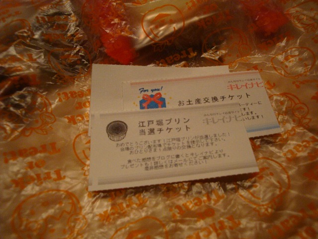 受付を済ませると、お菓子と引換券が入った袋を貰いました。プリンの引換券が入っていたら当たりですよー!と言われたのですが、当たりでした!ワーイ!