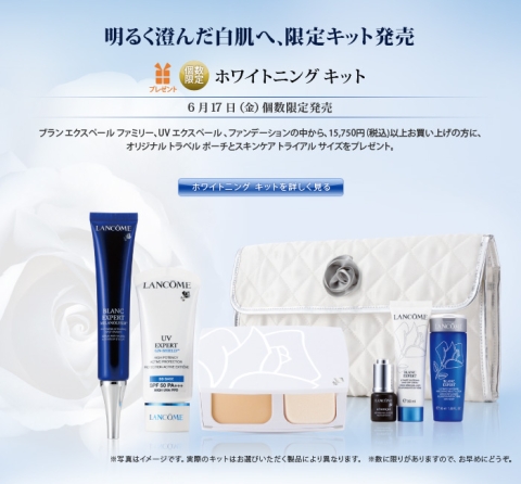 また、ブラン エクスペール ファミリー、UV エクスペール、ファンデーションの中から、15,750円(税込)以上お買い上げの方に、オリジナル トラベル ポーチとスキンケア トライアル サイズがプレゼントされるホワイトニングキットも発売されています。個数限定ですのでお早めに!