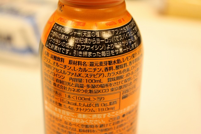 レモンジンジャー味で、炭酸が入っていて、辛みが思ったほど強くないですが、スパイシーな味わいで美味しいです。一本の量も100mlで、カロリーは15kcalなので、毎日摂取するにはとてもいいです!