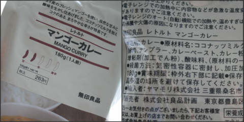 「へぇ~無印でもマンゴーカレー取り扱うんだ~。ヤマモリさんのマンゴーカレーは美味しかったよな~」と思いながら、パッケージの裏を見てみたら、ヤマモリさんの文字が!!!こ、これってあのマンゴーカレーじゃない???