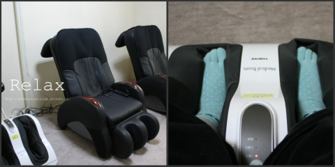 お腹も満たされた後、ゆっくり休みました。日頃歩きなれていないので、やはり足腰に疲れが来ていたので、腰には「めぐリズム 蒸気の温熱シート」を貼り、MHDに置いてあるマッサージチェアやフットマッサージ器で疲れを癒しました。かなり楽になりました。