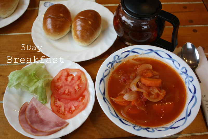 30分のストレッチの後は、最後の朝食です!今日は洋食メニューだ!