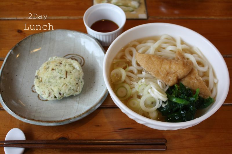 すっごく感動的だったのが、おからと豆腐のおやき!すごく美味しかったので、おかわり!と言いたいところでしたが、カロリーオーバーになっちゃうのでガマン、ガマン・・・。きつねうどんのあげも甘くてしっとりしていたし、お出汁がきいたつゆも美味しかったです。