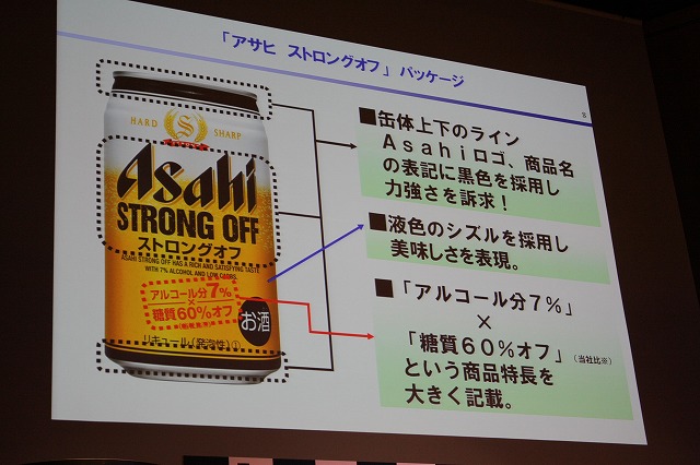 アサヒ ストロングオフは、アルコール分7%の「飲み応え」と糖質を60%(同社比)オフした「スッキリした味わい」が特徴だそうです。