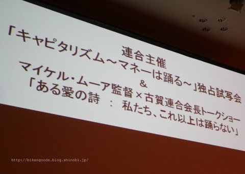ところで、日本のサブタイトルには『マネーは踊る』って付いているんですけど、これはまったくの意味がないものだそうです。ムーア監督は古賀氏の付けられたサブタイトルがお気に召したようです(笑)でも、『マネーは踊る』と付いたポスターは面白いのでアメリカに持って帰られるそうですよ!