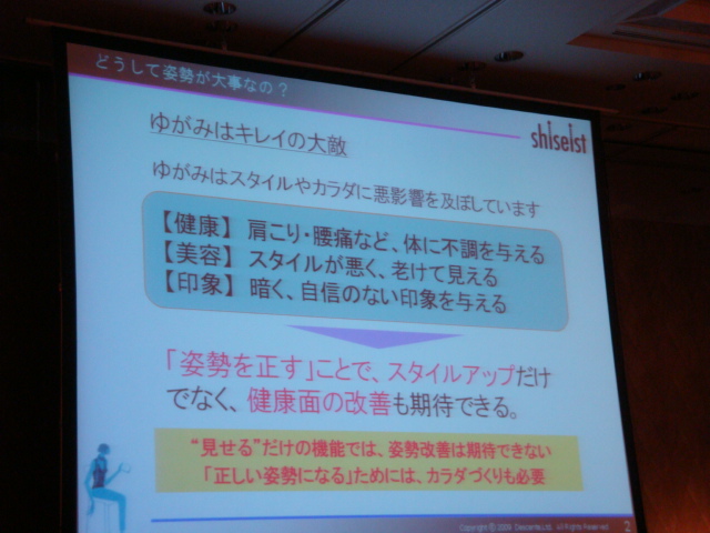 『シセイスト キャミソール』は、デサントさんから発売されている猫背を教えて、姿勢を意識させる、新機能インナーです。体のゆがみが、体に与える影響というものはとても大きいものだそうです。私も普段から意識して気をつけていても気が付くと猫背になっていたり、足を組んでいたりなど体を歪めてしまう行動を起こしています。