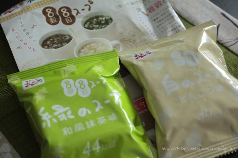 ぜひ他の種類も食べてみたいと思っていたら、お土産として「緑のスープ和風抹茶味44kcal)」と「白のスープ とんこつ味(49kcal)」を頂きました。
