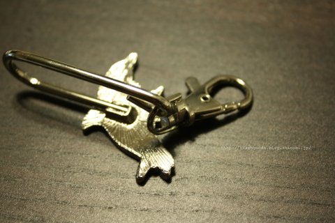 さて、使い方!とっても簡単です!裏返ししすると、キーを付けるところがあります。もちろん表側からもキーを付ける事が出来ます。金具の部分がくるくるっと回転するので、扱いやすいです。