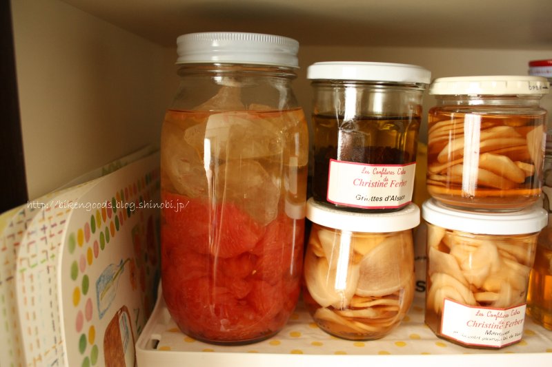 ②一日、一回、蓋をしたまま軽く振り混ぜます。一週間経ったら漬け終わったグレープフルーツの実は取り出します。
