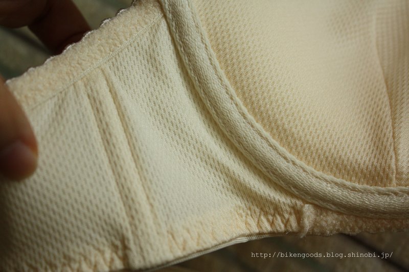 カップだけでなく、ベルトの部分も同じ素材になっています。アンダーゴムも生地で覆われていたり、汗を吸うワイヤーループになっていたりと、開発に携わった方が女性というだけあって、女性ならではの視点で「こーだったら快適なのに・・・」などの悩みを、開発する時に盛り込まれたのでしょうね。いたるところにこだわりが詰まっています。