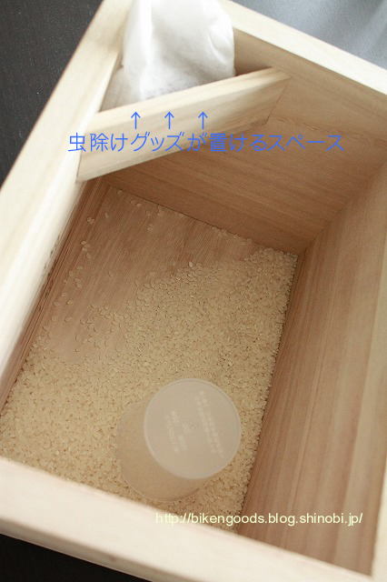 米びつに入れてみる・・・虫除けコーナーには、残念ながら入らず。