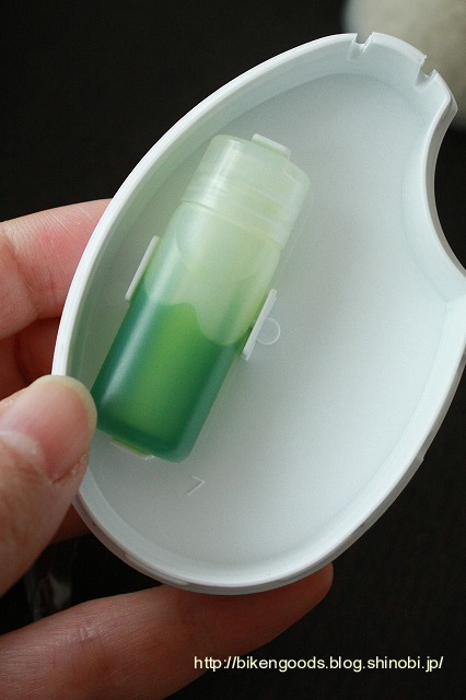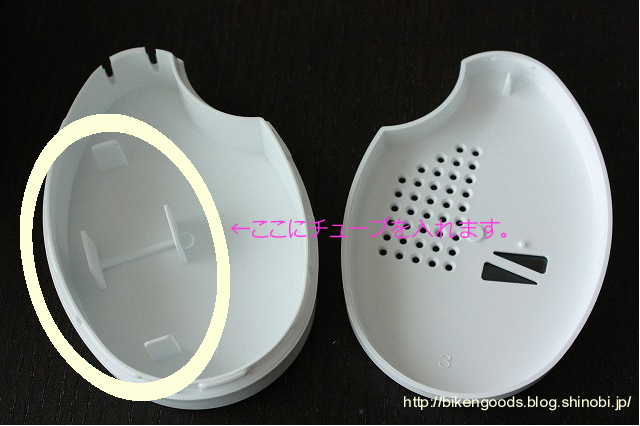 ケースをパカっと開け、溝部分にわさび入りのチューブを入れます。