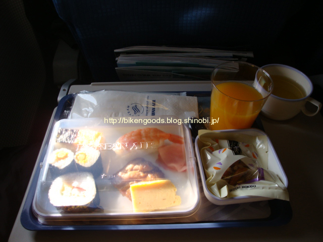 機内食は、お寿司が出ましたよ。