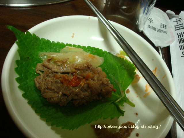 ガイドさんが「えごまの葉にお味噌とお肉を巻いて食べると美味しいですよ!」との事だったので、そのように食べてみました。日本ではなかなかお目にかかれないえごまの葉!とってもヘルシーでダイエットにも効果があると聞いていたので、食べるのを楽しみにしていました。しその葉にみたいに少しクセがあるけど、慣れればなんてことないです!美容健康のためにいっぱい食べてきました。