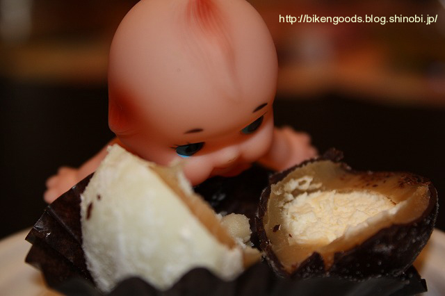 こちらは、ブラックバージョン。ビターチョコでコーティングされています。最初にビターチョコの味がするので、全体的に甘すぎない、大人な味わいです。