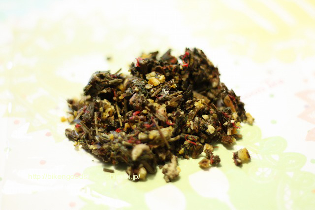入っている薬草は・・・「よもぎ」、「枇杷(びわ)」、「紅花」、「陳皮」、「当帰」、「川きゅう」、「薄荷(ミント)」、「高麗人参の葉」、「桂皮(シナモン)」が、ブレンドされています。