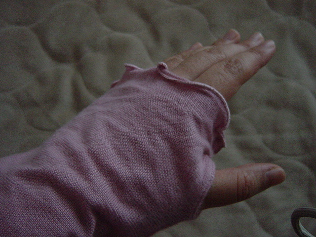 ③十二分袖で、親指の部分に穴が開いていて指先が自由に使える上、温かい