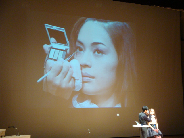 ポイントはまぶた全体にアイシャドウを塗る。リップは少し赤みのあるものを入れる。ということでした。めいいっぱいレンズをズームにして撮りましたが、イマイチ仕上がり具合がわかりづらくてすみません・・・参考になりましたでしょうか?