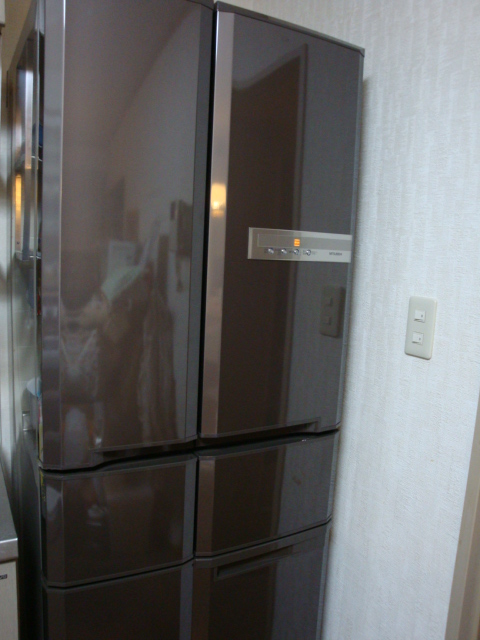 我が家で以前使っていた冷蔵庫は250L。今回買ったMR-G42Nは420L。比べてみるとずいぶん大きくなりました。カラーもプラチナブラウンという色でシックな風合いです。
