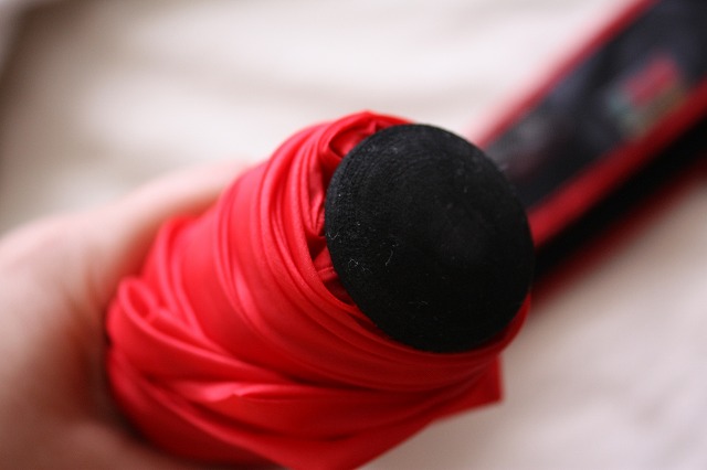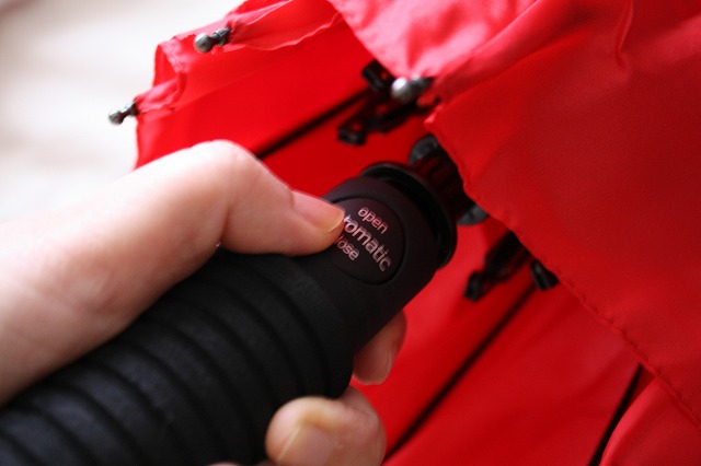 ボタンを押すとバっと傘が開くのですが、閉じる時もバっと閉じます。ちょっとビックリした(笑)なんでこんなにバっと開いたり閉じたりするんだ?と思ったら骨にバネが付いてました。納得。